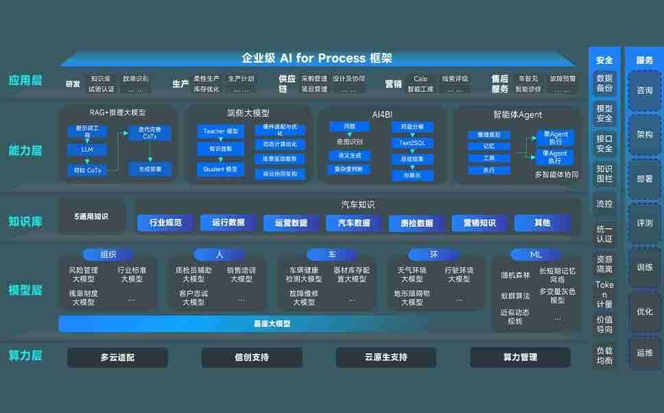 耀世娱乐问学智车解决方案是一套基于AI技术的汽车行业智能化系统,,,覆盖从底层算力到顶层AI应用的全栈方案。。。。方案由算力层、、、模型层和应用层组成:算力层,,,,方案支持多种一体机配置,,,,具备云端灵活部署、、多云适配以及动态优化计算资源的能力;模型层,,,,耀世娱乐问学平台版提供了企业级AI应用一站式构建与管理平台,,,,支持基于后训练强化技术的汽车企业专属模型的训练、、、、评测和运营;应用层,,耀世娱乐问学DeepSeek版提供包括超级员工、、智能招采、、、、智能营销、、、、智能客服、、AI for BI等一系列解决方案,,,,可助力汽车行业实现数字化转型,,,让管理更智能、、、、响应更敏捷。。。。